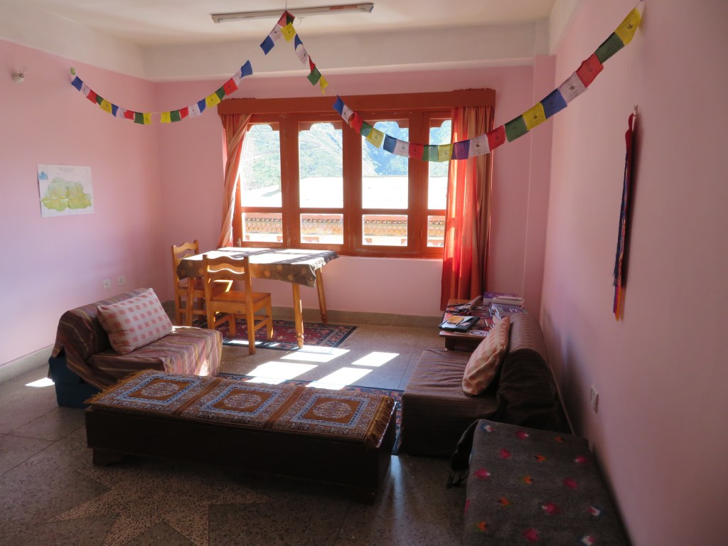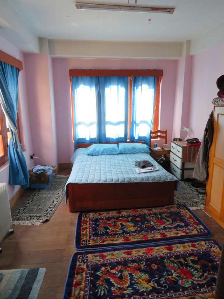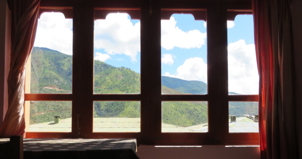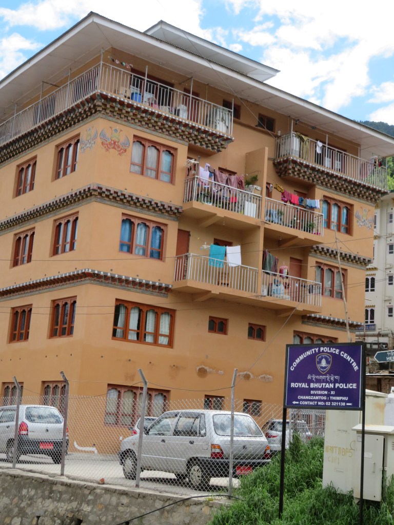 Our apartment is provided by Health Volunteer Overseas. As with all buildings in Thimphu, it is limited to six or fewer stories in height and built in the traditional Bhutanese style, though with concrete and steel for earthquake stability, instead of the traditional wood and rammed earth. More on construction to follow. Our balcony is the one with the green and white towels on the line.