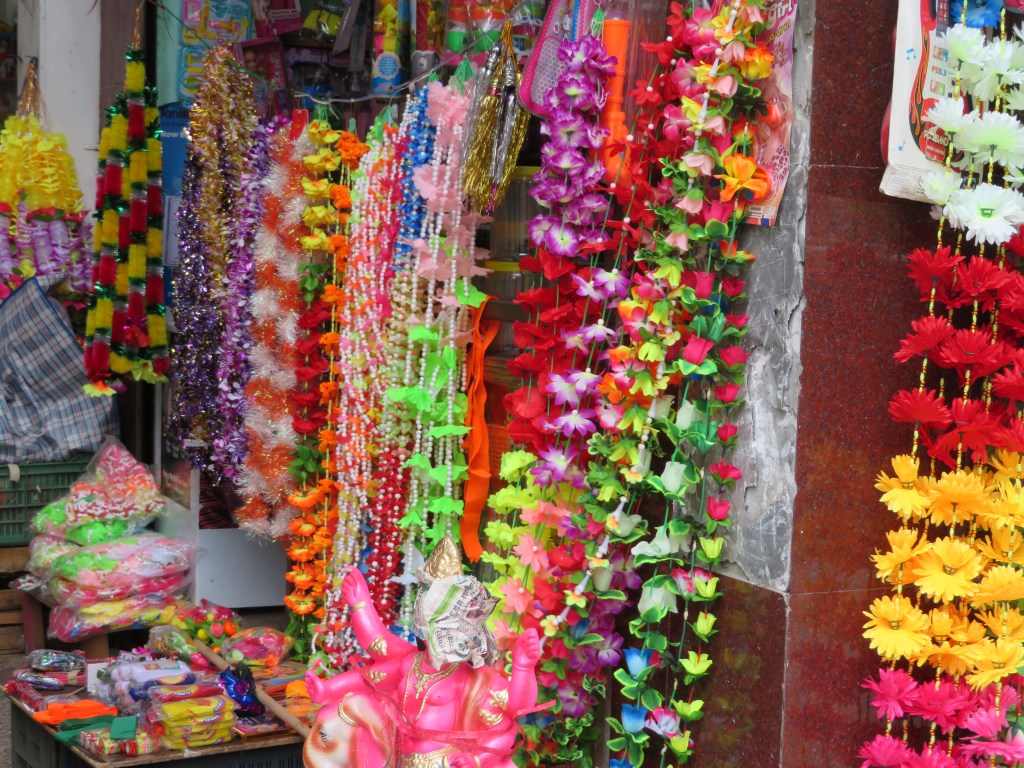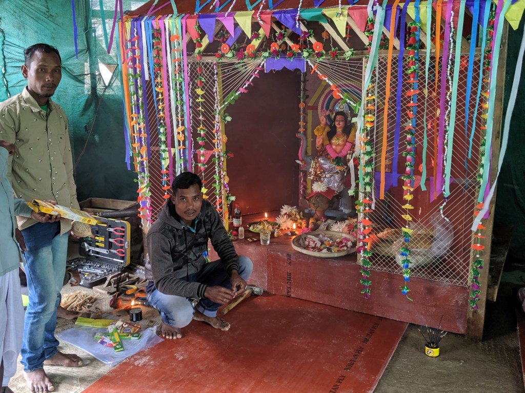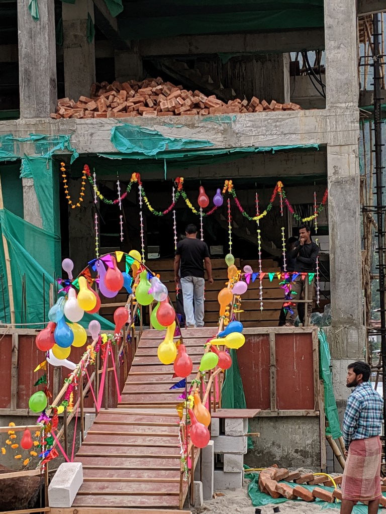 Every major construction site has it’s own shrine and the worshipers party through the day and night, Indian music blaring from loud speakers often purchased that day for the occasion.