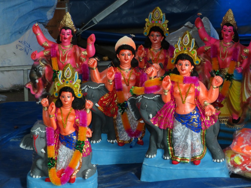 We had started out after work with the innocent intent of going to the post office, but a centerpiece of the celebration is generosity. We were invited in to eat, dance and party at several pujas along the way, always with other, non-Indian guests coming and going. Reluctant to decline our hosts’ invitation, we ate paratha, rice pudding, unknown sweet crispy things and apples. After an unpleasant morning, I am afraid I will have to decline next time.
