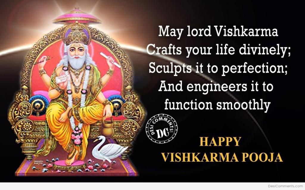 Vishwakarma is referred to as the divine carpenter, and this day is celebrated with much fervour by the communities of factory workers, architects, labourers, craftsmen, mechanics, among other skilled labourers. In fact the workplaces and factories of such skilled labourers are also adorned with pictures and idols of Vishwakarma.