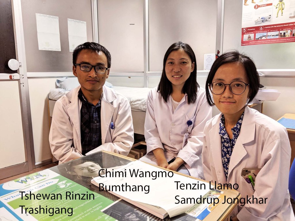 In the US, aspiring physicians must first complete a four-year Bachelor’s degree, more often than not in a science related field. However, in Bhutan, a doctor in the making goes immediately from Class 12 to Medical School. Bhutan doesn’t yet have its own medical school, so students go abroad, more often than not to Sri Lanka, completing a degree in four years. Tuition and expenses are paid by the Bhutanese Government and, in return, the student is required to practice in Bhutan for twelve years. A one year internship in Bhutan follows, the intern rotating through various specialties, including one month in Psychiatry, after which they are turned loose as a General Doctor Medical Officer (GDMO). Not exactly turned loose. Another National Exam is administered, the results this time determining where they are assigned for the following year. This is where I would be getting scared.