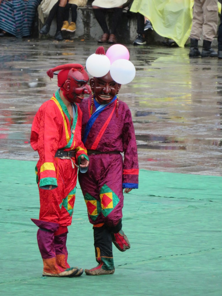 Although humorous, they play very important roles in the dances. They are actually accomplished masters, knowledgeable regarding dance movements and steeped in the nuances of every ritual performance. If the dancers happen to make a mistake in their movements or steps, The Atsara is on hand to guide the performers back on track. If there is a problem with a dancer’s custom or mask, the Atsara can assist him immediately. Look for Atsaras throughout the pictures from all three days of Tshechu.