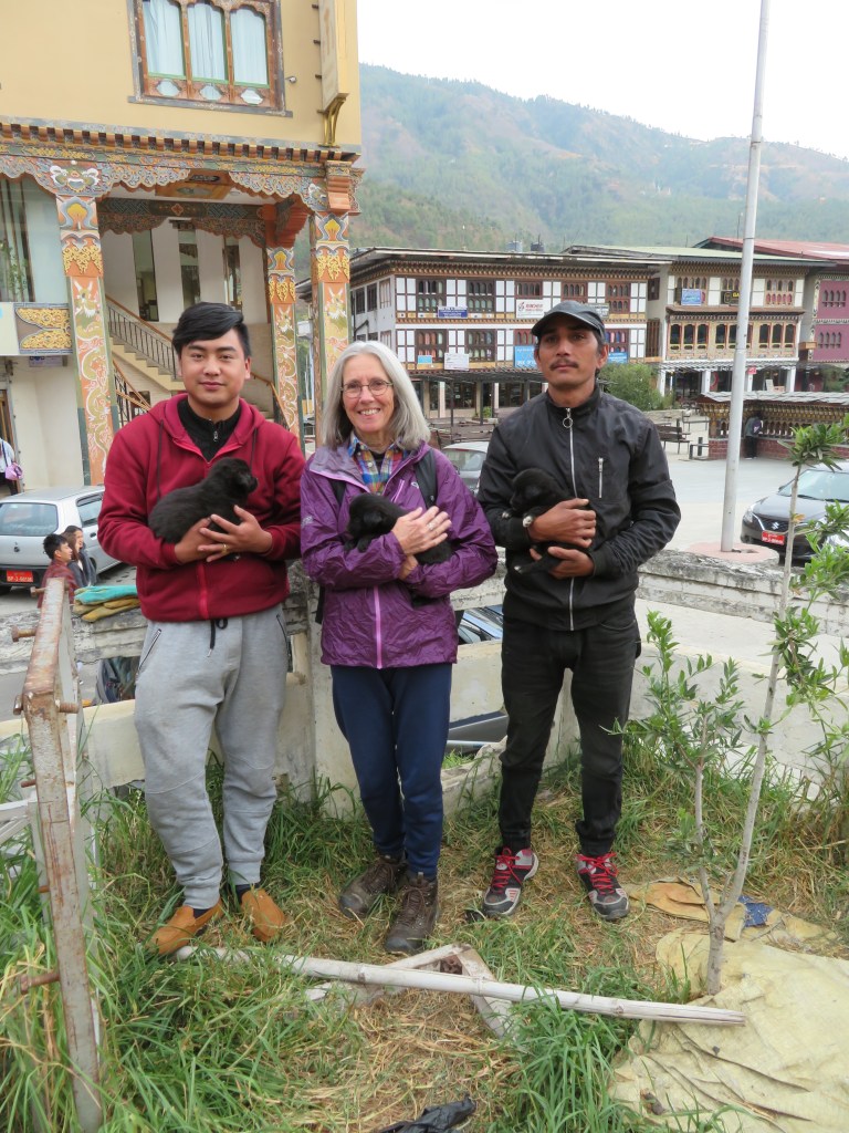 While we were in Bhutan, Margaret volunteered the the Royal Society for the Protection and Care of Animals, founded by Madam Tashi Payden. Please note, it is not the society for the prevention of cruelty, but the society for the protection and care, the emphasis on the positive being a universal trait among the Bhutanese. A highway sign might suggest you “be considerate of other drivers.”