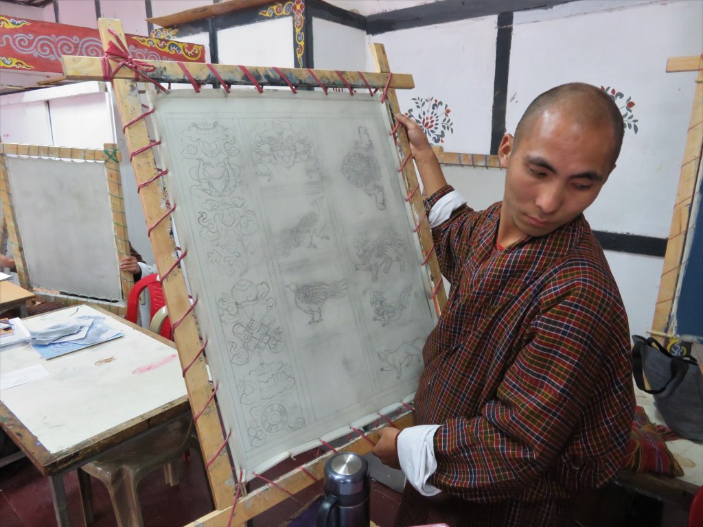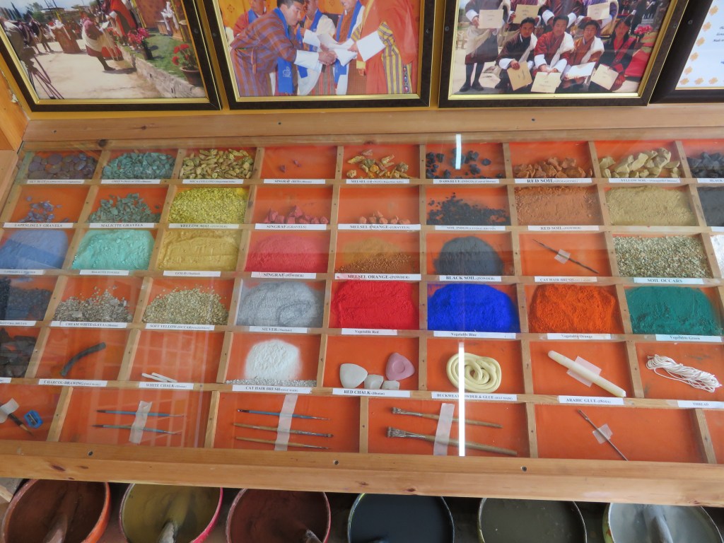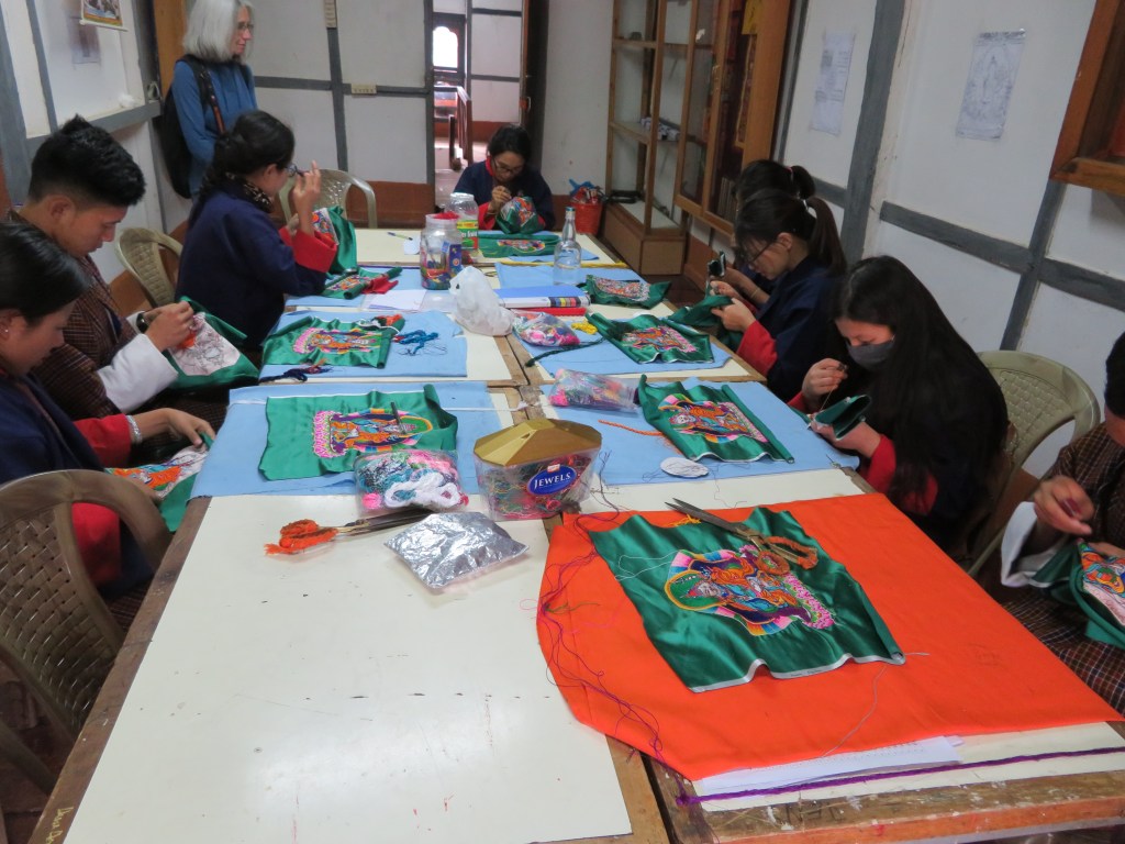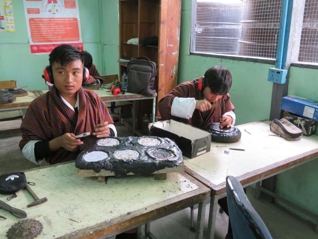 Courses of study range from two to six years in duration, students applying as completion of Class 10 or 12 approaches. In addition to learning their specific craft, they take classes in business and marketing. On completion, graduates usual start their own businesses or partnerships. At the downtown end of the main street in Thimphu there are 83 craft stalls operated primarily by the graduates where their wares are available for sale to both locals and tourists.