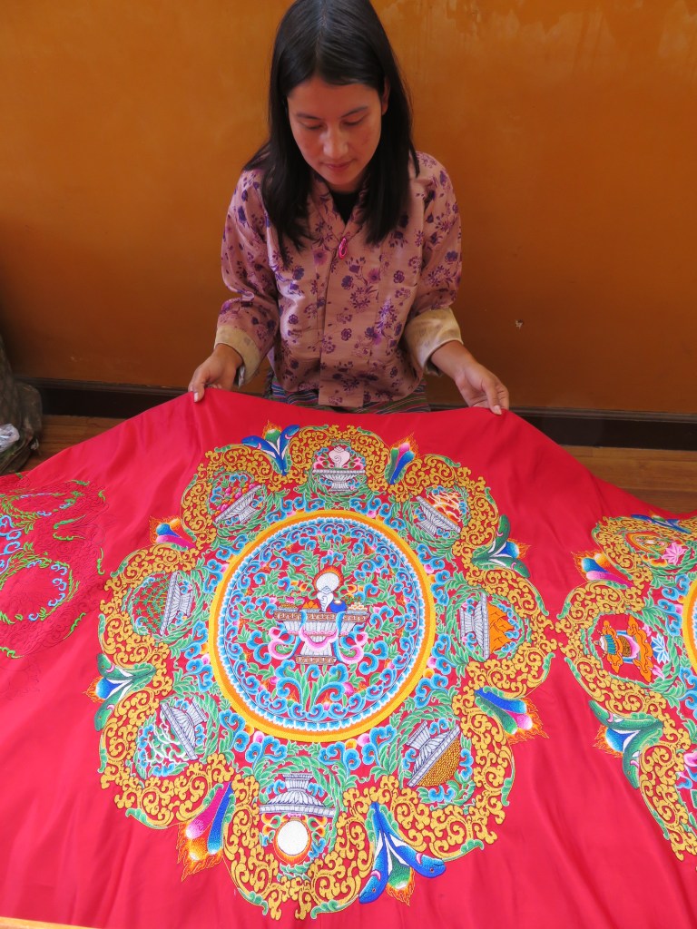 Embroidery graduate working at the Quality Thangka shop. This is two years of work