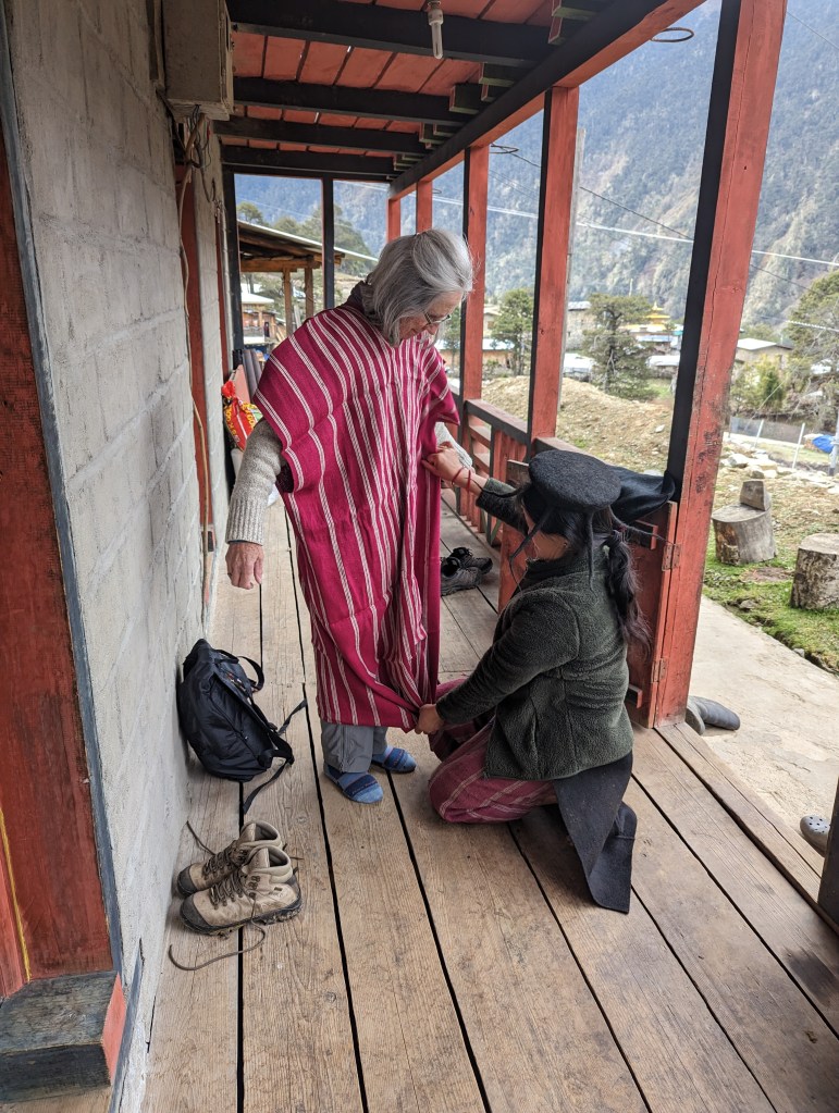 Margaret can make friends with anyone, though Sangay, the hostess, remained reserved during our visit. No doubt the language barrier plays a role. One of the difficult things to adapt to here in Bhutan is how deferential the Bhutanese are to us as western guests.
