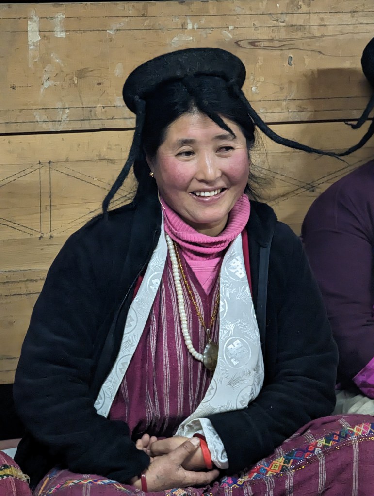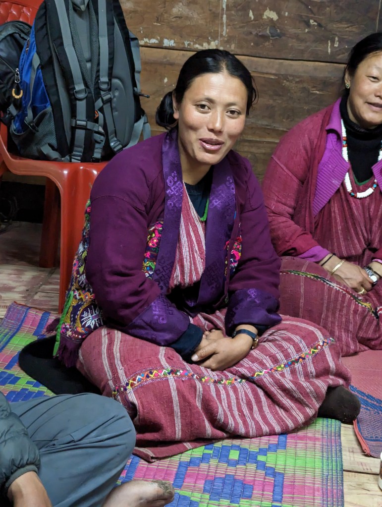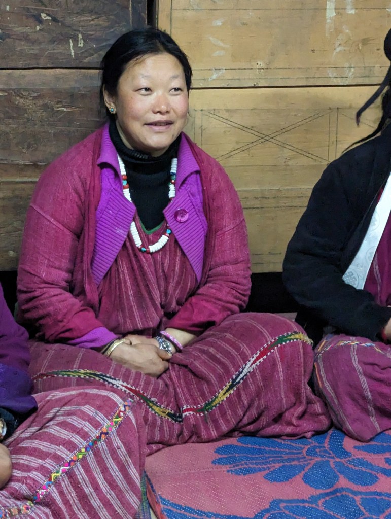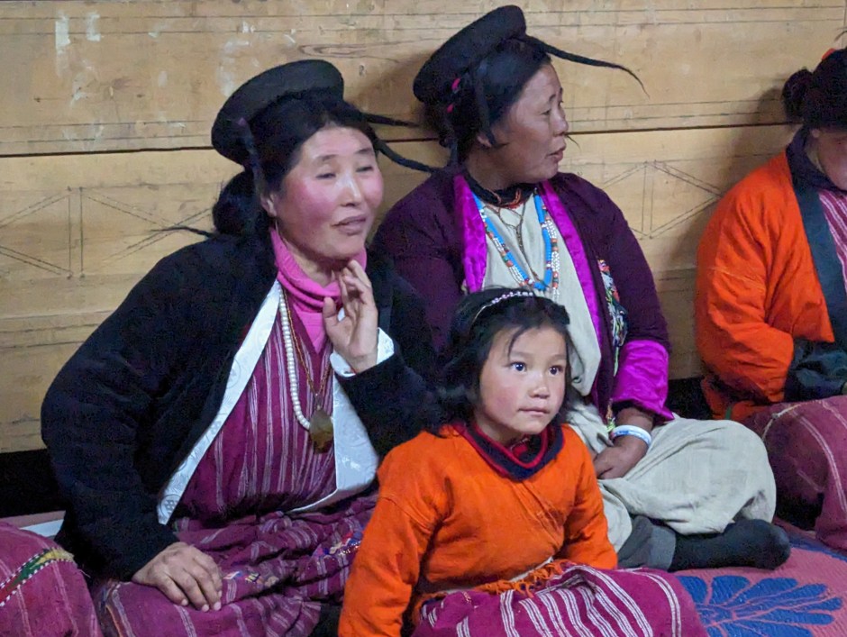 The people of Merak are known as Brokpas. They are semi-nomadic yak-herders, tending to the herds in the pasture lands during the summer and returning to their homes in the winter. Although they are Bhutanese, they have a distinct culture and language, preserved by centuries of geographical isolation. The evening of our stay, several villagers came to visit.