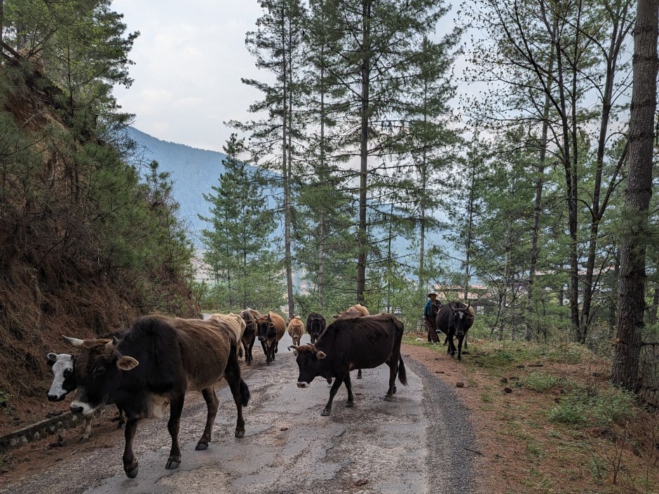 By day’s end we weren’t the only ones eager to head home. Contemporary access to the Tang Valley is by a roughly paved single lane road, shared by motor vehicles of all shapes and sizes, along with humans, horses, cattle and dogs.