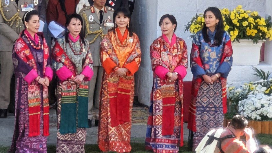 The four Queen Mothers of Bhutan and the current Queen, Jetsun Pema. The Queen Mothers are sisters from a prominent Bhutanese family, descendants of the founder, Zhabdrung Nagawang Namgyal, a family I understand to have been rivals of the first King, Ugyen Wangchuck. The Queens are equal in rank and each have their own residence in the hills surrounding Thimphu. Between them, they have ten children. The order of ascendance to the throne is by order of birth. Privately married in 1979, a public celebration of marriage was held in 1988, legitimizing the eventual succession to the throne of his son, the current Druk Gyalpo. Both polygamy and polyandry have historical precedent in Bhutan but are now uncommon.