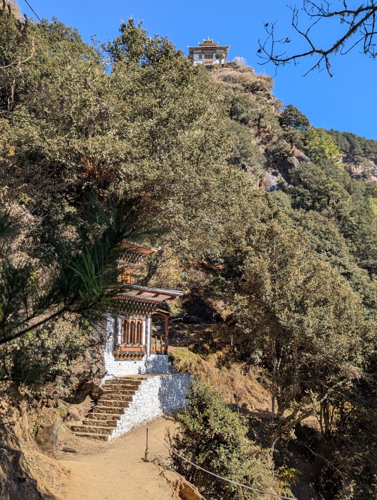 The trail to the monastery has improved dramatically in the years since our first visit. During the COVID pandemic, unemployed tour guides, along with many other Bhutanese, received an income from the King’s Kidu fund. Consistent with the national spirit we see manifest everywhere here, the guides, in return, volunteered to reroute and refurbish the trail system.